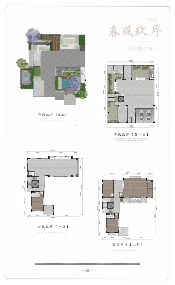 负一层配备私家车库、双下层庭院以及多个生活空间。最高处近5.9米的挑高在确保通风采光俱佳的同时,将生活的万般喜好藏入家中。