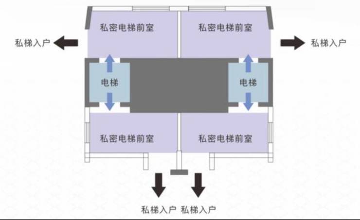 翼式楼体结构,让每一户都独揽了一个约10㎡的独立前厅,实现了家家都有私梯入户的