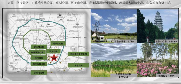 以项目为原点,直达三大城市生态带:青龙湖湿地公园、白鹭湾生态公园、三圣花乡