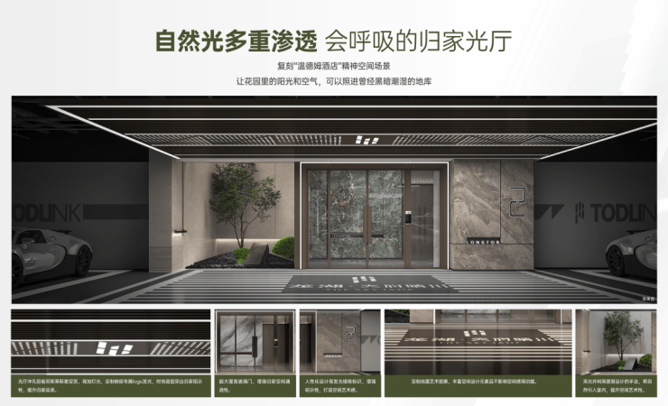 架空建筑让自然光多重渗透,归家光廊+会呼吸的归家光厅。阳光与空气照进地库,明亮归家之路