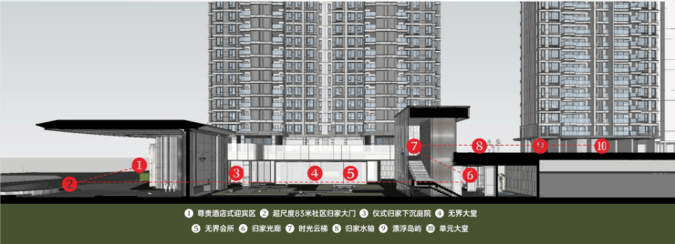 一层约83米酒店式归家大门+约1200平下沉庭院