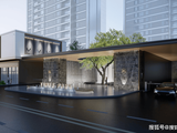 主入口对景水院,采用“自然系”主题雕塑与浑然天成的景致湖滩,同时以天然石块、片岩结合下沉卡座,打造约300㎡曲水流觞逸境。以欣赏者视角为设计语言,锻造香槟金铝板,镶边轻奢金属线条,米灰色仿石漆、落地窗、大面…