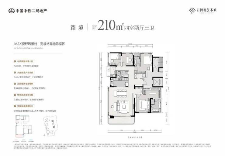 采用LDKG一体化设计,搭配约20米的采光面,让阳光充分照进室内;建面约210㎡的户型配备270度宽幕阳台,在此既能欣赏美景,又能悠然品茶,还适合亲子互动。此外,双主卧套房与独梯入户的设计,为每位家庭成员提供专属的舒适空间。同时,项目采用多腔体断桥铝 + LOW - E中空玻璃,实现五维静音效果,让家中静谧如同图书馆一般。区域价值
