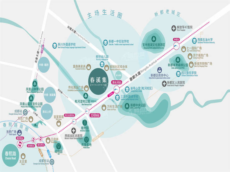 从春溪集坐地铁30分钟,就可以直达成都的核心商业CBD春熙路太古里