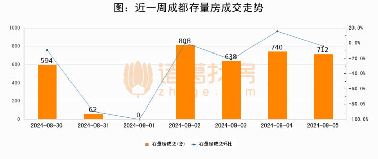 从存量房来看,2024年09月05日成都存量房单日成交712套,比昨日减少28套,环比下降3.8%。从近一周存量房成交来看,成都存量房日均成交套数为507套,09月05日单日成交712套,高于近一周平均水平40.4%。