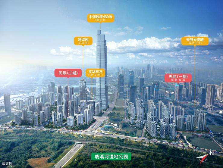 【天际一期】(11号地)位于中海天府里北侧,与拥有30万㎡商业的成都天府大悦城直线距离仅约150m,组团的北侧就是规划的“北部绿廊”。