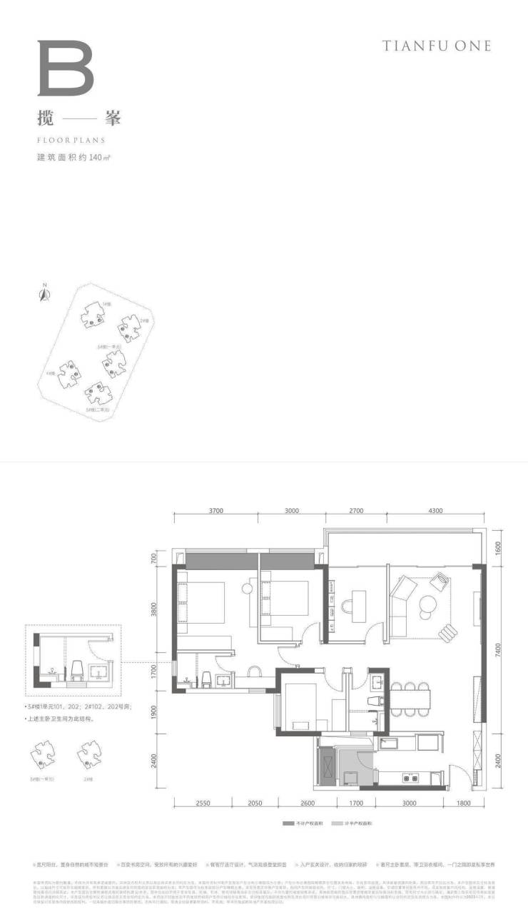 产品方面,天际(一期)主打建面约120㎡舒居套三、140㎡宽境套四精装产品,面积段非常纯粹。