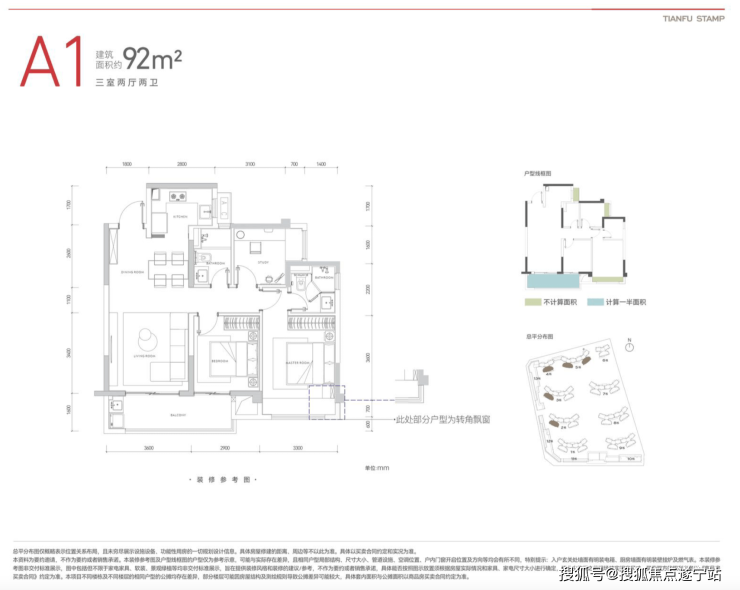 三房经典款主力户型92户型:三面宽朝南,南向开间9.8米
