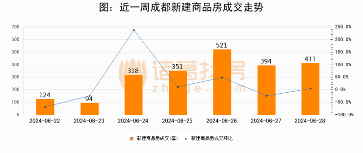 【成都成交日报】06月28日新房成交411套、二手房781套;涨价房源115套