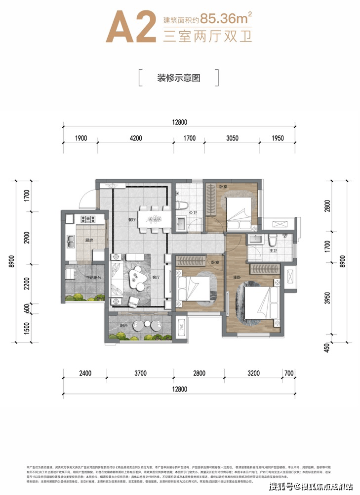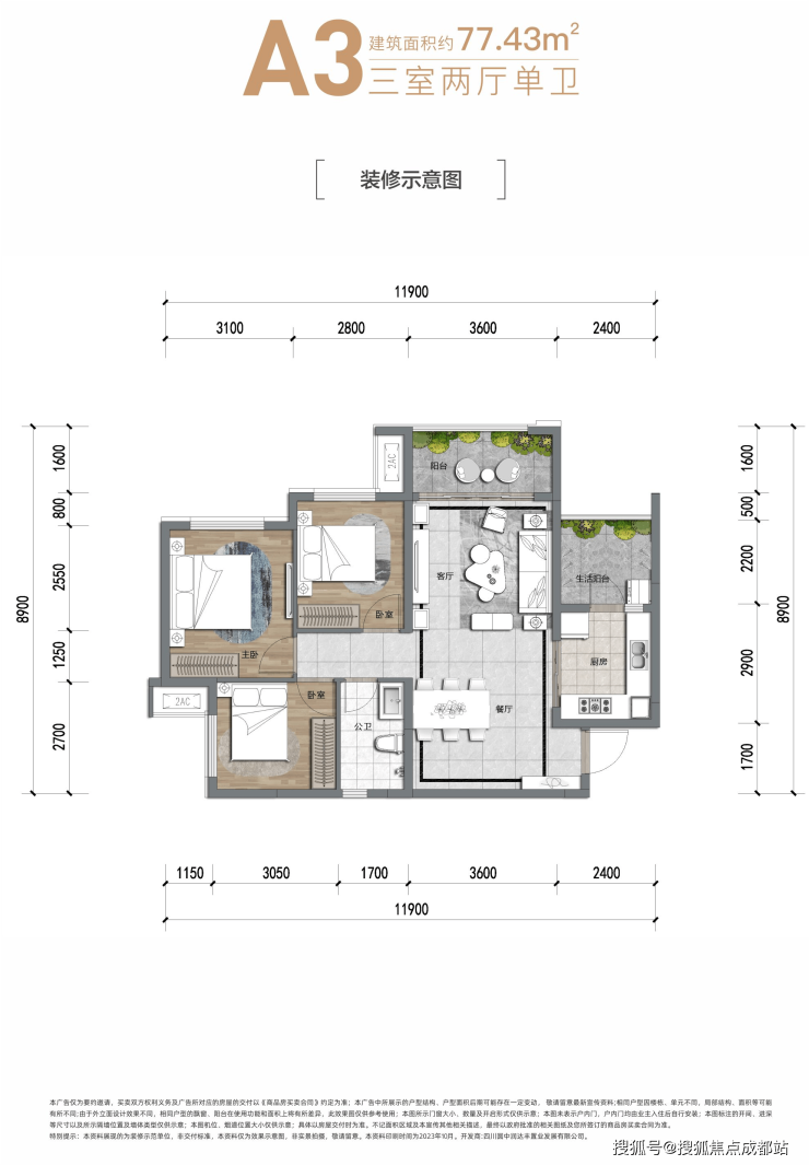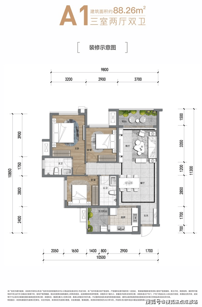 居住舒适度高:套三单卫起步,户型设计合理,双阳台、大面宽阳光客厅,能满足家庭的日常生活和休闲需求,让居住更加舒适。