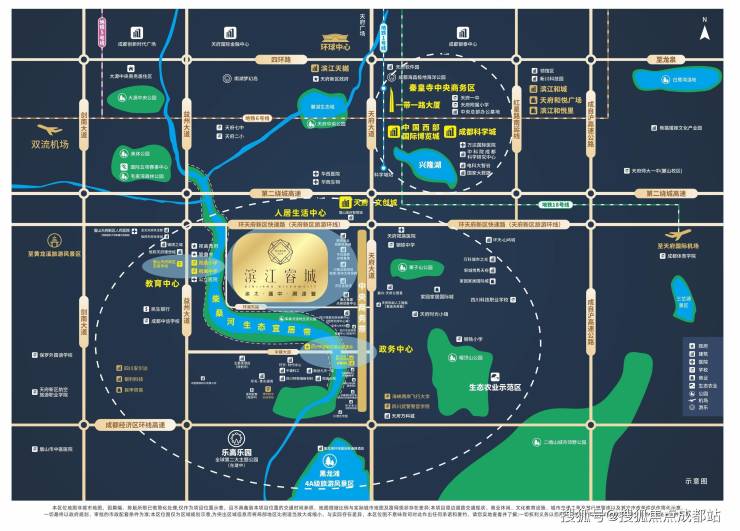 交通便捷:坐拥环天快速通道和天府大道财富十字路口,处于南天府门户口岸,四横五纵交通路网完善,南北贯穿兴隆湖、科学城,约45分钟可到达环球中心,往北直达黑龙潭、眉山仁寿;东西接壤双流国际机场32公里、天府国际机场35公里,且S5线预计2026年12月建成试运营。