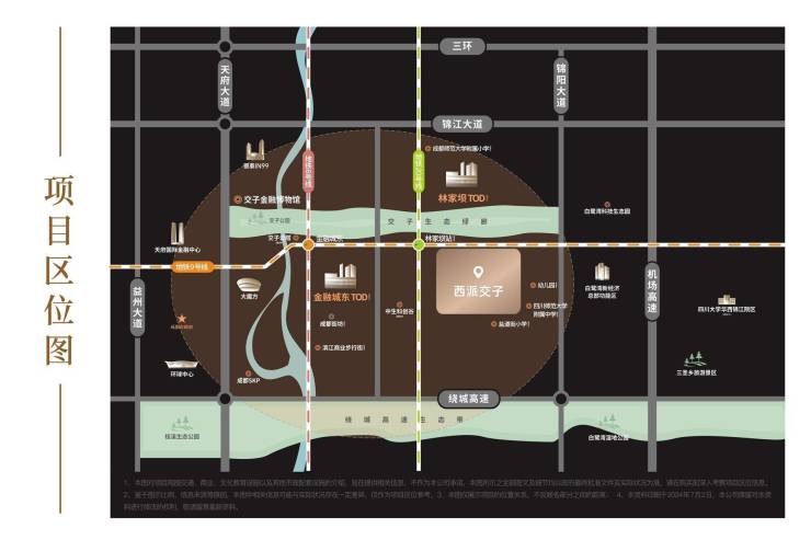 交通:三纵三横双TOD。三纵,锦阳大道、锦华路、天府大道。三横,三环、锦江大道、绕城。双TOD轨道:距项目约700米,地铁9/20号线规划串联金融城TOD和林家坝TOD。