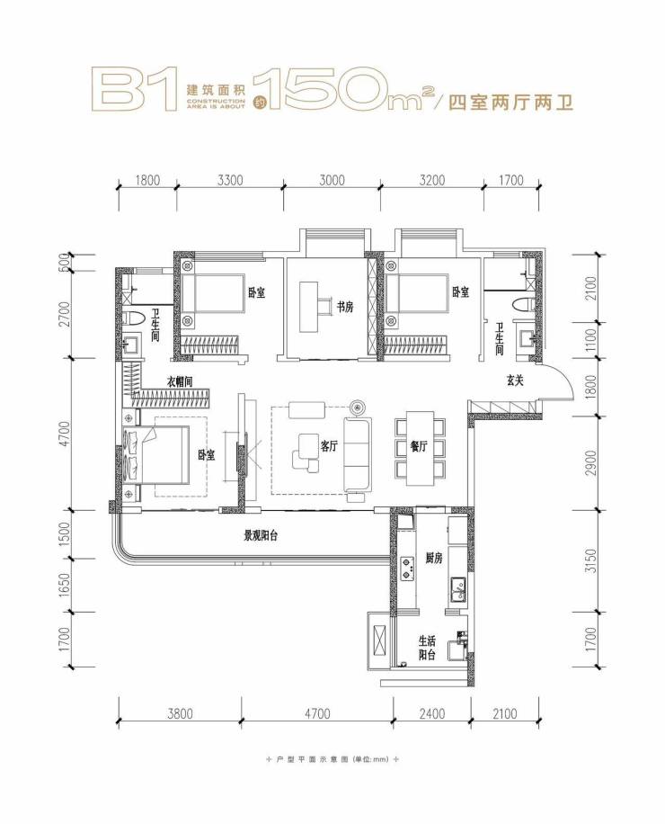 B1 建面约150㎡ 四房两厅两卫