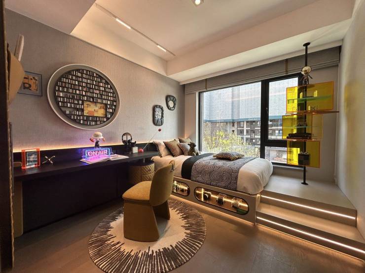 126㎡的户型为2梯2户,独立入户,拥有双面采光的电梯前厅;15米面宽+4.5开间朝南,拥有极好的日照、采光和观景效果;得房率约92%。