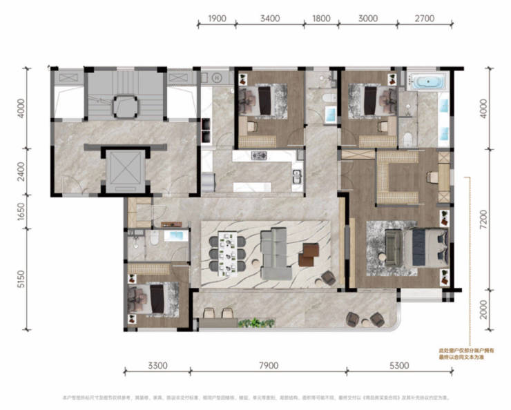 199㎡户型:约60㎡的行政级主卧系统;约10米巨幕阳台