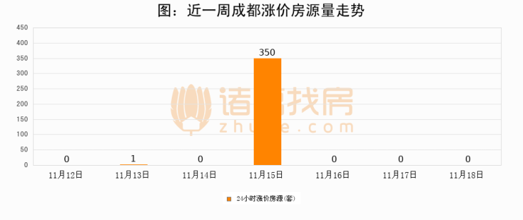 根据诸葛找房数据显示,成都24小时涨价房源量为0套,较11月17日持平。