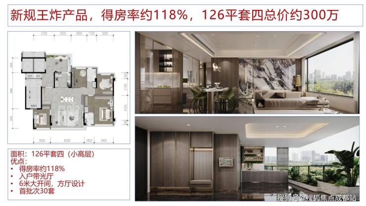 户户配置入户光厅;全系大横厅+大阳台设计;LDK一体化空间;主次卧奢适尺度保障;精研当代高端家庭生活场景所需,定制化打造人与自然强交互、人与人强交互的家庭社交型空间。