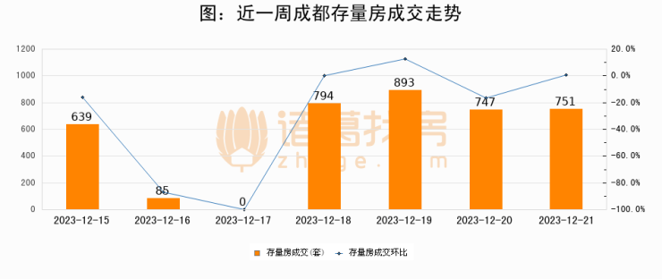 从存量房来看,2023年12月21日成都存量房单日成交751套,比昨日增加4套,环比上涨0.5%。从近一周存量房成交来看,成都存量房日均成交套数为558套,12月21日单日成交751套,高于近一周平均水平34.6%。