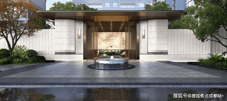 第1域/鸣鹿庭轻灵而自然的前院,完成城市烟火与静谧生活的诗意隔离。
