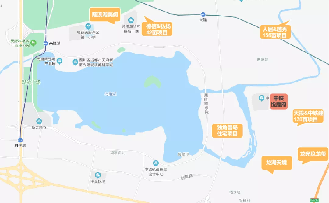 地处兴隆湖东岸,配套尚有短板虽然中铁悦鹿府的预期售价很诱人,但不得不说,该项目目前在配套上依旧存在一些短板。整个片区最为瞩目的当属产业规划。以兴隆湖为中心的99.4平方公里土地,是规划建设中的成都科学城。其被定位为西部地区重大科技基础设施、科研院所和大学创新平台汇集区,围绕网络安全、航空航天、生命科学等领域,创建综合性国家科学中心,建设天府实验室和国际技术转移中心。中铁悦鹿府就属于成都科学城五大产业区中的鹿溪智谷科学中心。