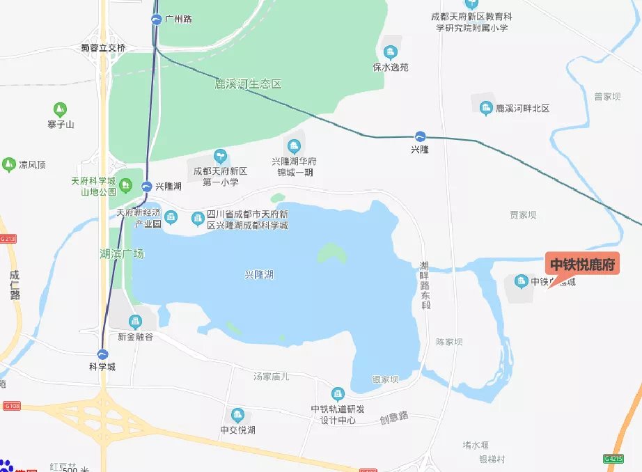 ▲地铁18号线兴隆站实景相较之下,中铁悦鹿府周边当前的配套呈现,就显得逊色了些。首先,在交通上主要还是要依靠自驾出行。距离刚刚开通运营的地铁18号线兴隆站约2.3公里,距离地铁1号线兴隆湖站则近5公里,这都超过了步行可达的范围。同样,无论是与当前划片对口的学校距离,还是可享受到的商业配套、医疗资源(四川大学华西天府医院预计明年7月投入使用),都有4公里以上的距离,算不上便捷。不过,从整个鹿溪智谷片区的在建及规划项目来看,教育、产业及生态资源也很有看点。▲鹿溪智谷核心区在建项目分布,图片来源于纹理成都教育配套上,除了中铁悦鹿府东侧300米范围内在建的天府十幼和三根松学校,在其往南约1公里、毗邻楼盘龙光玖龙玺还规划有中小学用地。所以,后期业主入住,与教育配套的距离将不是大问题。项目虽到兴隆湖有约2公里的距离,但北临鹿溪河,东临山地公园和鹿溪智谷网球中心,生态资源及景观视野也有较大优势。