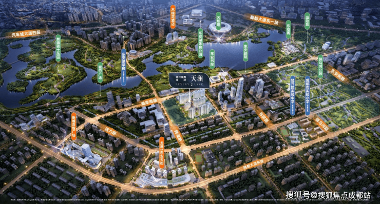 项目北揽5000亩东安湖生态,南拥龙泉驿区约20万方最大商业 综合体——龙湖东安天街+吾悦广场,兼具静谧生态与繁华商圈,汇聚东安湖最好的配套资源。