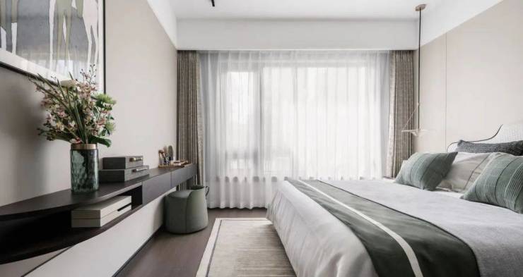 约24.4㎡的套房主卧,拥有独立卫生间和专属衣帽间,摆放2×2.2米的大床后依然宽松,自由可变的空间格局,也为生活带来更多想象。