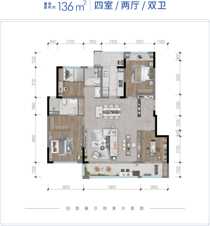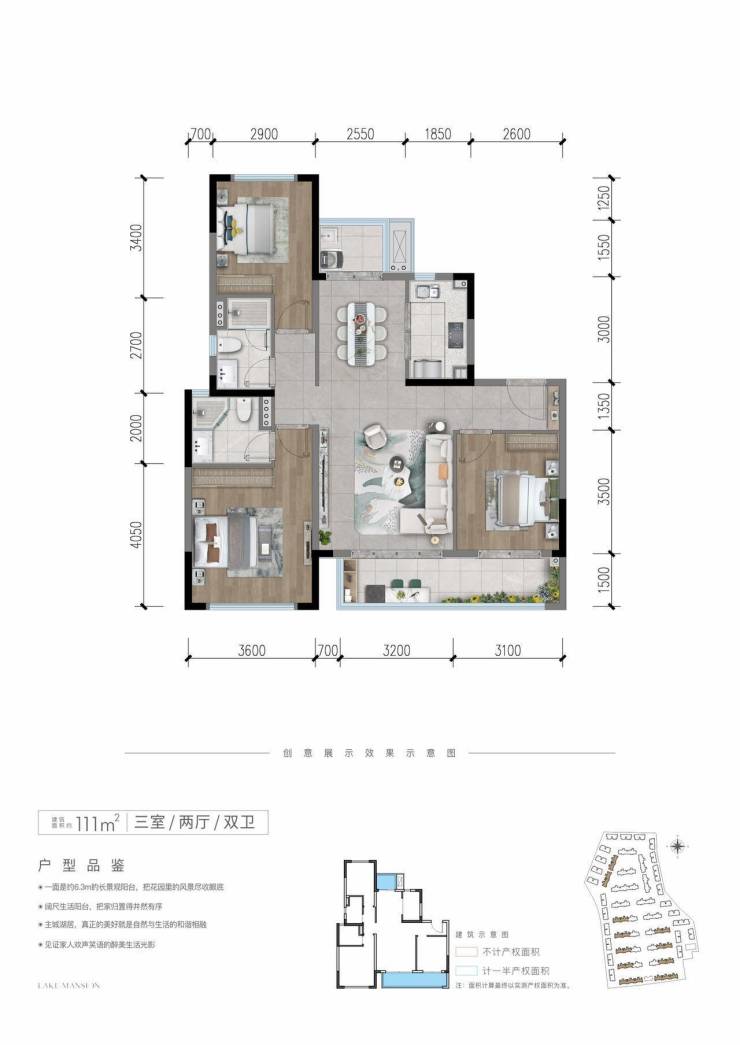 110套三双卫洋房亮点: