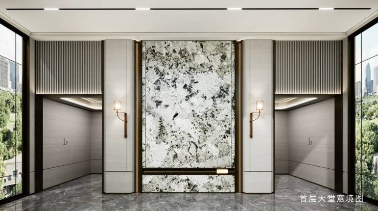 70米宽酒店式大门,7.1米挑高设计,配以叠水景观与珍稀植被,打造顶级归家仪式。