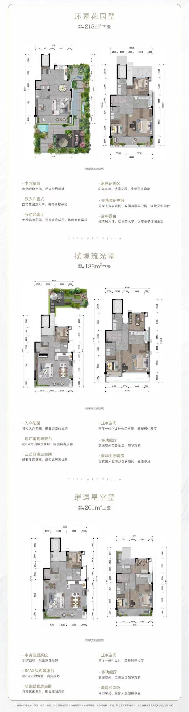 产品面积段:叠拼约182㎡-215㎡