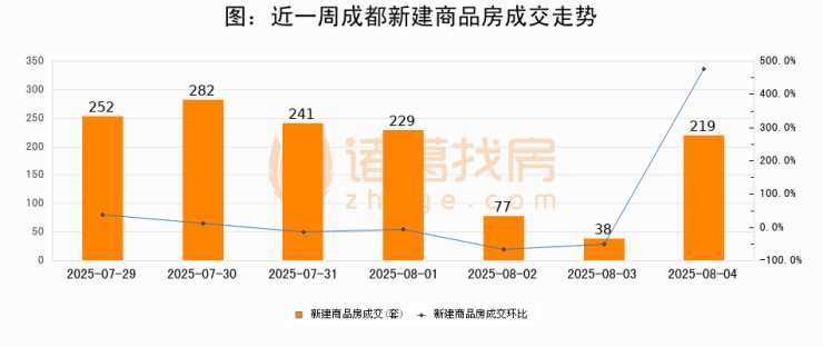 【成都成交日报】08月04日新房成交219套、二手房899套;涨价房源109套