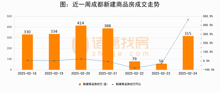 【成都成交日报】02月24日新房成交315套、二手房1477套;涨价房源10套