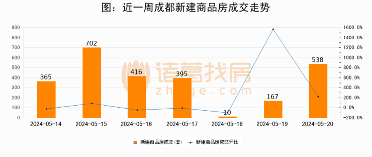 【成都成交日报】05月20日新房成交538套、二手房992套;涨价房源12套