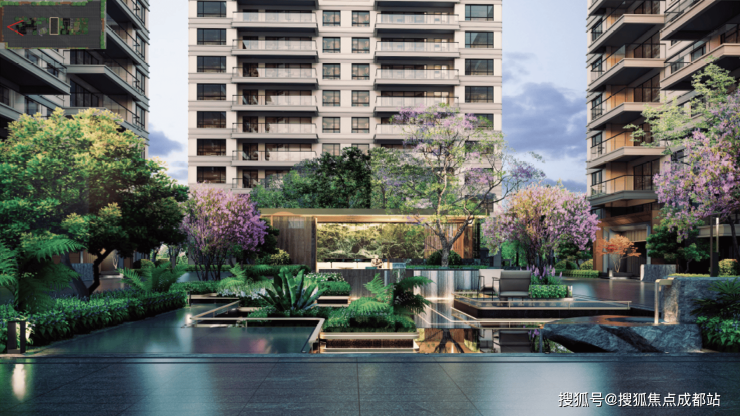 空间形态:3栋高层住宅呈 “C”形布局,共同围合出一个集中的、规模可观的中心景观庭院。