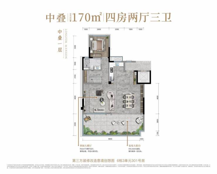 中叠约170㎡四房两厅三卫