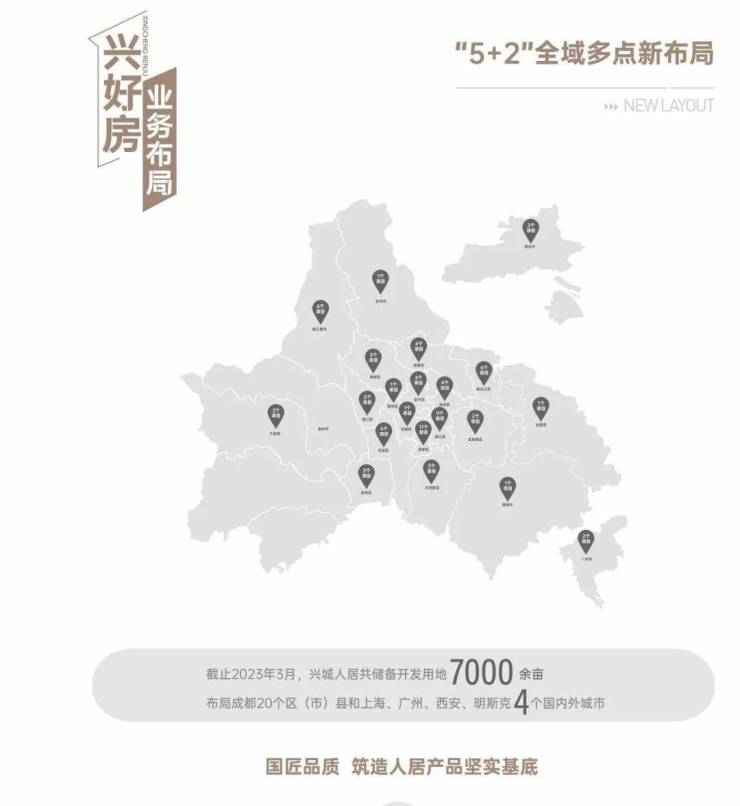 兴城人居—“成都造”国企,荣获中国房地产业综合实力100强、中国房地产公司品牌价值TOP10等称号。截止2023年上半年,兴城人居认购面积、认购金额居成都第一。截止2022年12月底,公司资产规模846亿元,累计开发项目7000余亩,综合实力居成都市属国有城市开发企业首位。