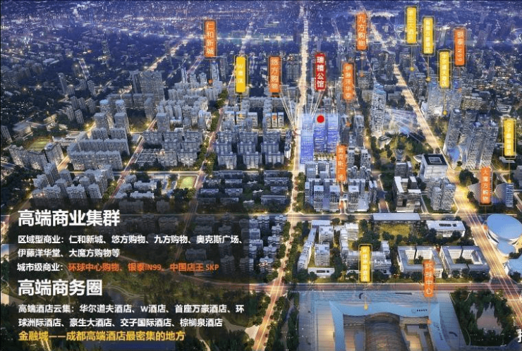 城市地标群——交子双塔、交子之环、环球中心,交子金融中心,华尔道夫,五粮液演艺中心…,西部最黄金的5平方公里