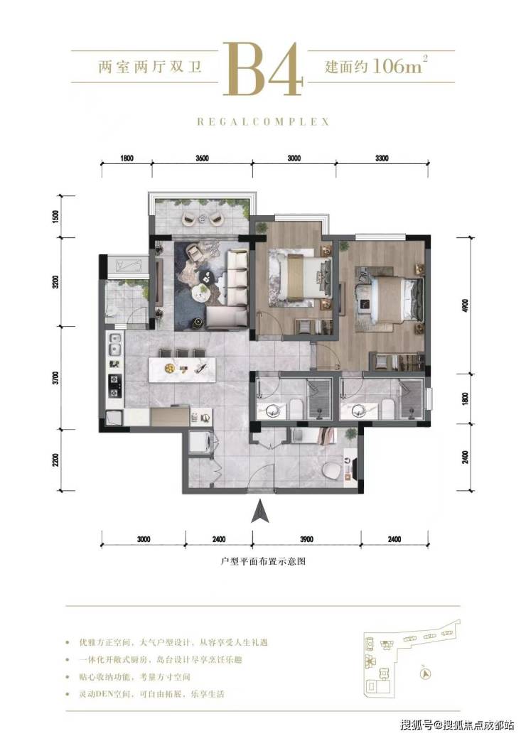 户型区间:106㎡两居至233㎡四居