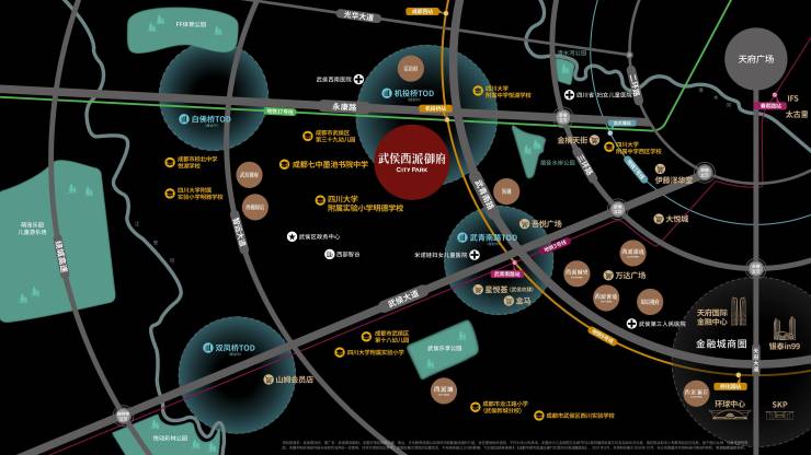 3.5环串联金融城、武侯新城、青羊新城楼市核芯,地铁9号线一脉贯通。新兴产业、TOD交通网格等构建繁华城市蓝图,板块高端能级再进阶。