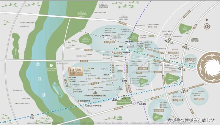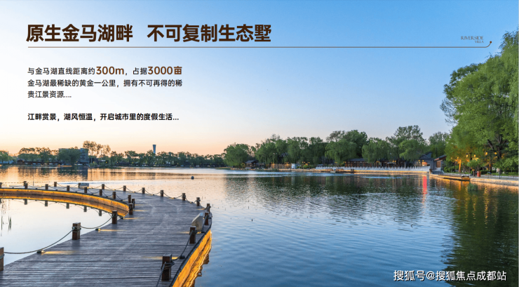 城市度假别墅:2-5公里内,饱和的商业、教育、医疗等配套;1公里内,3000亩金马湖配套生态资源;