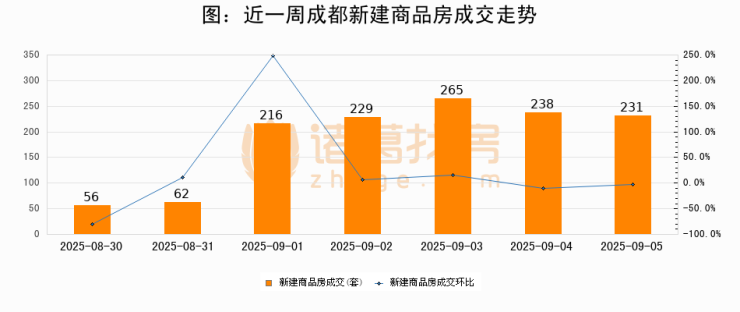 【成都成交日报】09月05日新房成交231套、二手房689套;涨价房源5套