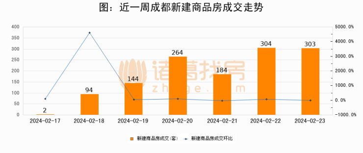【成都成交日报】02月23日新房成交303套、二手房521套;涨价房源115套