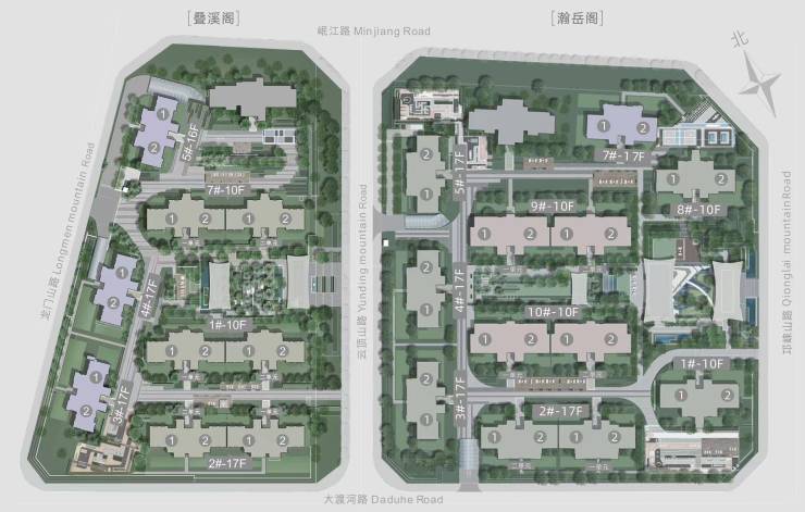 占地面积:三期叠溪阁24亩,四期瀚岳阁35亩
