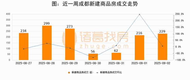 【成都成交日报】09月02日新房成交229套、二手房754套;涨价房源2套