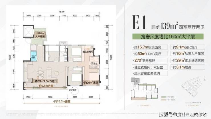 139㎡-套四双卫E1户型