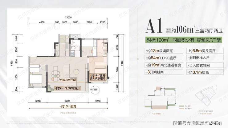 106㎡-套三双卫A1户型