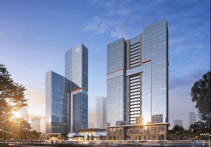 建筑风格:现代中式,国际化地全玻璃幕墙外立面