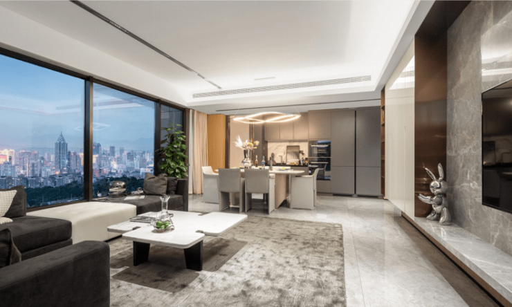 独创抗病毒产品设计:免接触电梯、入户带有消毒功能独立玄关及杀菌功能的玄关柜,室内双流向循环新风系统。