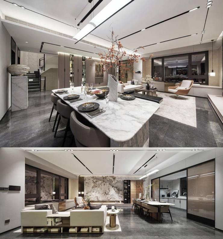 上叠下叠分由南北入户,户内连接地下室和地面起居空间,下叠预留私梯条件,上叠赠送私梯配置,形成独立化居住动线