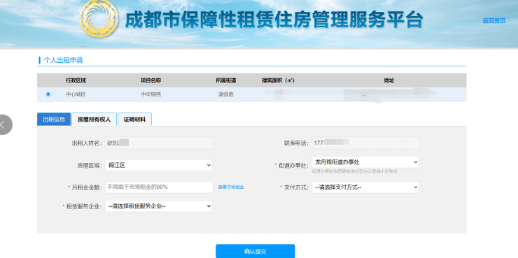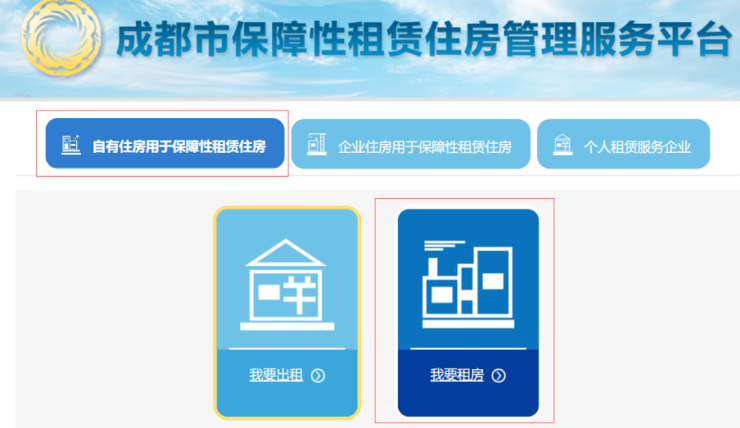 符合上述条件的申请人可搜索成都市住房和城乡建设局官网(http://cdzj.chengdu.gov.cn)进入“住建蓉e办”。填写个人相关信息后登录“住建蓉e办”,点击“保障性租赁住房”进入到成都市保障性租赁住房管理服务平台。进入成都市保障性租赁住房管理服务平台的“自有住房用于保障性租赁住房”,点击“我要租房”。